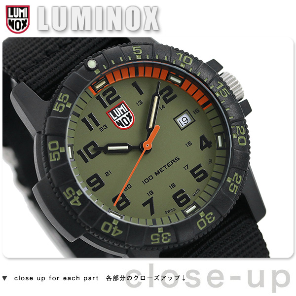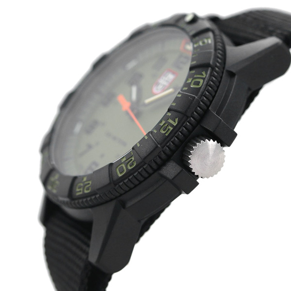 7年保証キャンペーン ルミノックス レザーバック シータートル ジャイアント 0320 シリーズ 44mm スイス製 クオーツ メンズ 腕時計 l0337 LUMINOX LEATHERBACK SEA TURTLE GIANT 0320 SERIES アナログ カーキ×ブラック ◆LUMINOX(ルミノックス)は1989年に創業。高性能なスポーツラインを展開しており、ラテン語で「明るい夜」を意味するブランド名を掲げているように、最先端の発光と視認性の良さを特徴としています。極限の状況下で行われるミッションで必要となる視認性を確保しているルミノックス時計は、特殊軍用時計として絶対的な信頼感を得ています。 りゅうずガードの間にリューズが露出しているデザインがウミガメに似ていることから名付けられた、シータートルシリーズ。究極の自己発光システム「ルミノックス・ライト・テクノロジー(通称LLT)」の数量をあえて減らすことで、タフな性能はそのまま、よりリーズナブルな価格を実現。幅広いプロフェッショナル達のニーズにこたえることができるようになりました。ベルトをナイロンにすることでミリタリー感をプラス。カジュアルスタイルにもぴったりです。