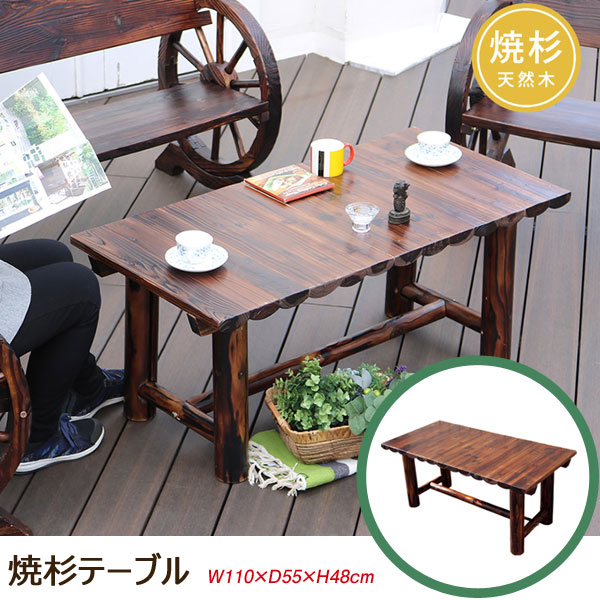 焼杉テーブル 幅110cm ヴィンテージ風テーブル ヴィンテージ風ベンチ 杉松天然木 WB-T550DBR