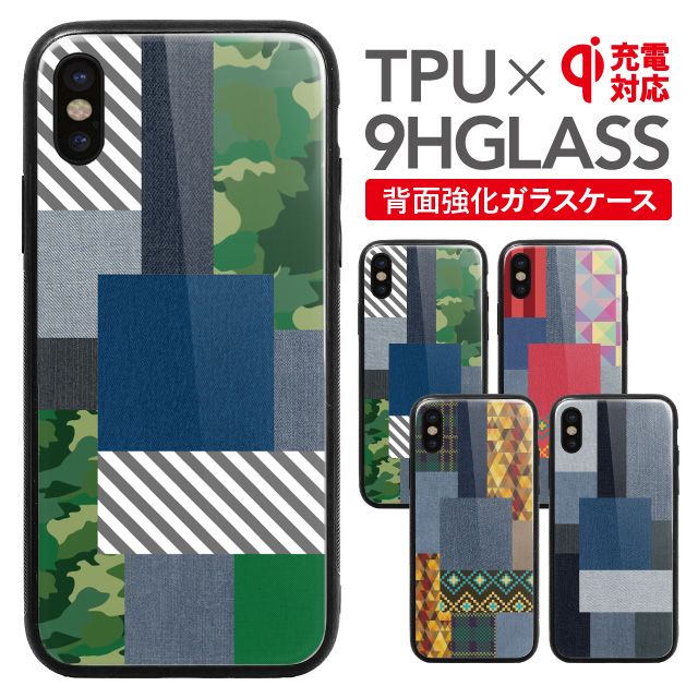 アイフォンケース 高級感 耐衝撃 カバー パッチワーク マルチカラー 迷彩 カモフラージュ ボーダー デニム風 チェック pgsc-all-003-gdn002