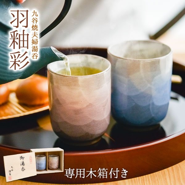 見る人を惹きつける華やかな絵付けは九谷焼の伝統技法「花詰」が使われており、二人の時間を特別なものにしてくれます。寒い季節でも暖かいお茶が飲める蓋付きなのも嬉しいポイントです。金婚式、結婚記念日等の記念品や贈り物にも最適な、高級感がある木箱でお届けします。