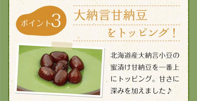 牛乳(国内製造)、砂糖、甘納豆、抹茶/ゲル化剤(増粘多糖類)、乳化剤(一部に乳成分、大豆を含む)