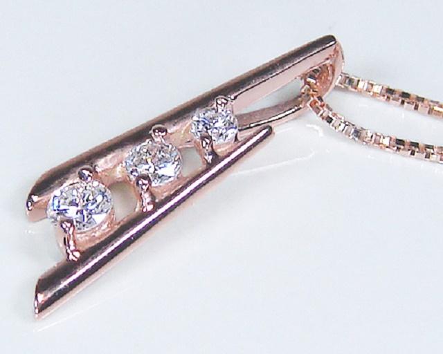 K10PGダイヤ ペンダントネックレス ダイヤSIクラススリーストーン【送料無料】【4月誕生石ダイヤ】