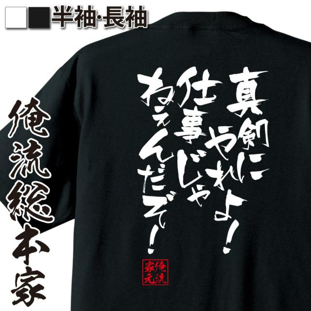 俺流 隼風Tシャツ【真剣にやれよ!仕事じゃねぇんだぞ!】名言漢字 メッセージtシャツ| 大きいサイズ プレゼント メンズ ジョーク 文字tシャツ バックプリント 文字入り 外国人 お土産 おもしろ ふざけtシャツ 二次会 景品 長袖