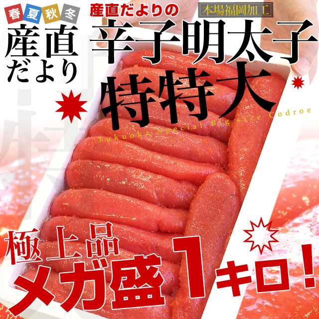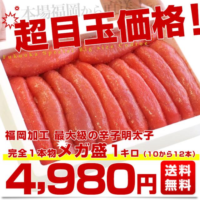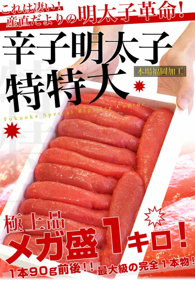 福岡加工 辛子明太子 特特大 1本もの メガ盛 1キロ(10から12本入)産直だより 福岡直送 from九州めんたいこ メンタイコ 一本物 1本物 送料無料 【発送時期:カート内に記載しております】
