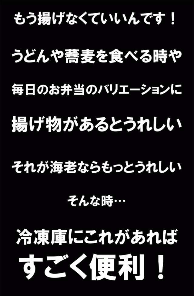 加熱する場合、凍ったまま175℃の油で約2分30秒揚げてください。