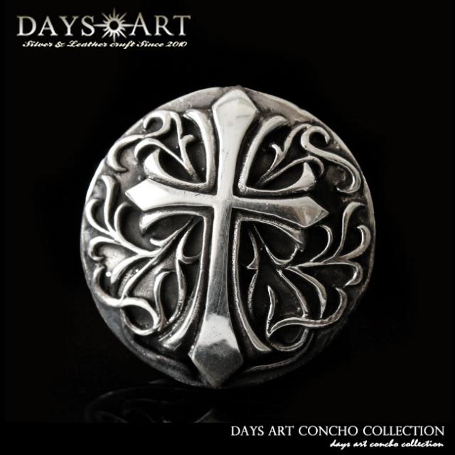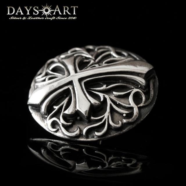 コンチョ メンズ シルバー925 丸型 サークル クロスコンチョ ネジ式 ゴシック調 アラベスク シルバー cc164