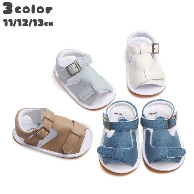 サンダル 子ども用 ベビー 赤ちゃん ファーストサンダル ベルト デニム風 可愛い オシャレ お出掛け お散歩 お外遊び