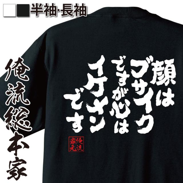 俺流 魂心Tシャツ【顔はブサイクですが心はイケメンです】名言漢字 メッセージtシャツ| 大きいサイズ プレゼント メンズ ジョーク 文字tシャツ バックプリント 文字入り 外国人 お土産 おもしろ ふざけtシャツ 二次会 景品 長袖