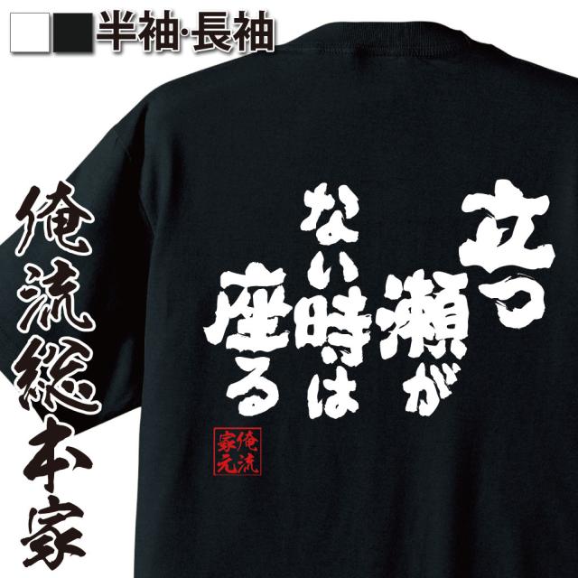 俺流 魂心Tシャツ【立つ瀬がない時は座る】漢字 文字 雑貨| 文字tシャツ 面白 大きいサイズ 文字入り 長袖 男性 おもしろ プレゼント メンズ ふざけtシャツ 外国人 お土産 立場 場所がない 苦境