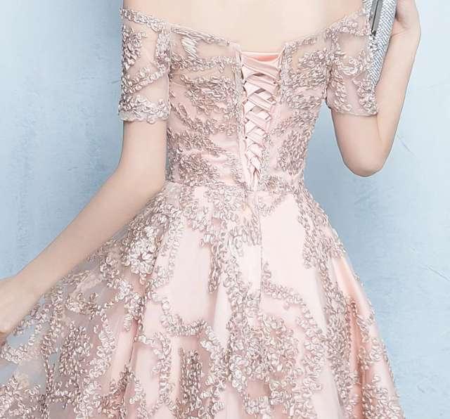 パーティドレス 結婚式 お呼ばれ 演奏会 春夏 30代 ミニ丈 半袖 袖あり レース 刺繍 Xライン フィッシュテール フェミニン