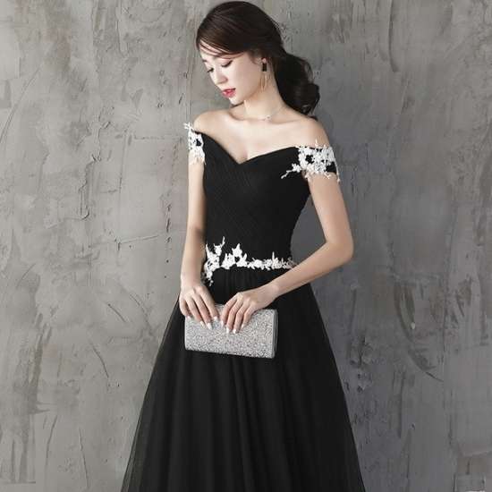 ロングドレス 黒 演奏会 パーティードレス ワンピースドレス ワンピース ドレスワンピ お呼ばれドレス イブニングドレス 二次会 お呼ばれ ステージ衣装 発表会 音楽会 食事会 ブラック 大きいサイズ マキシ丈 袖なし オフショルダー フレア Aライン 無地 レース Vネック 上品