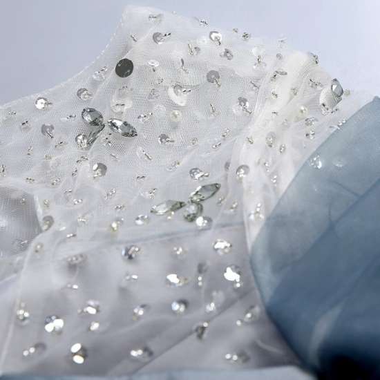 デコルテのビジューが華やかで、エレガントな印象に♪