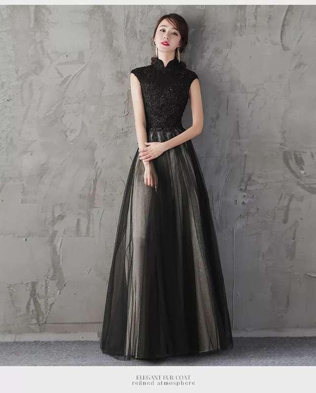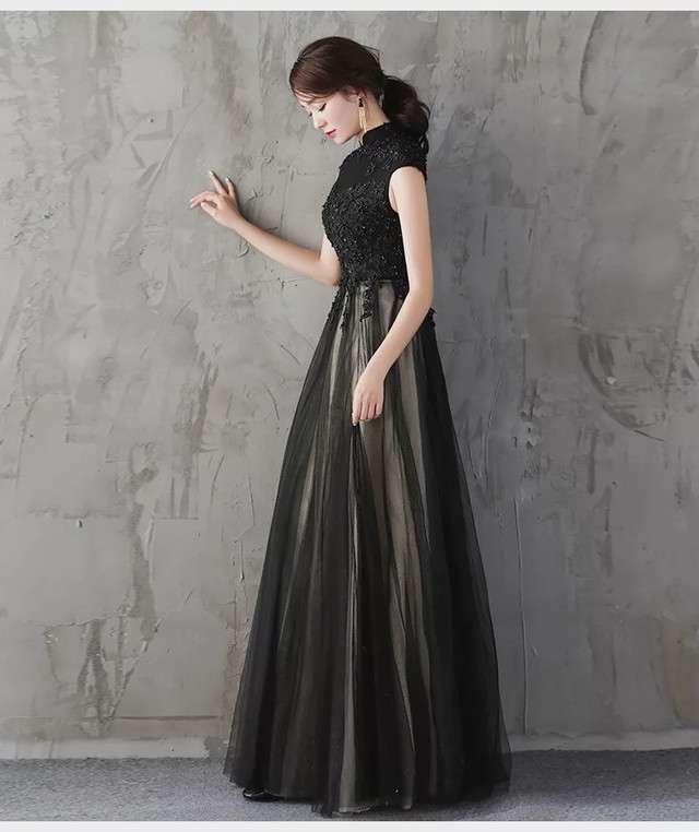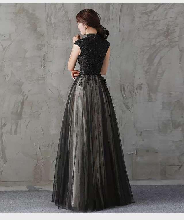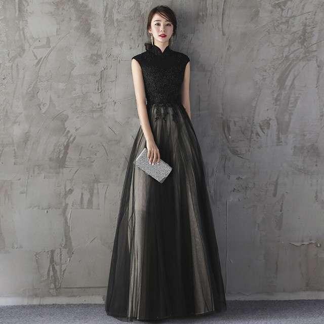 ロングドレス 黒 演奏会 パーティードレス お呼ばれドレス イブニングドレス お呼ばれ ピアノ 発表会 音楽会 ステージ衣装 食事会 ブラック マキシ丈 袖なし フレア Aライン チュール 刺繍 花刺繍 ハイネック 20代 30代 40代 50代 フォーマル シンプル エレガント 大人