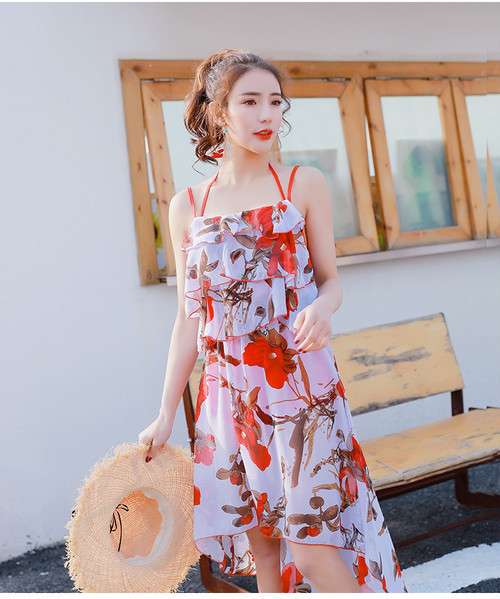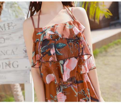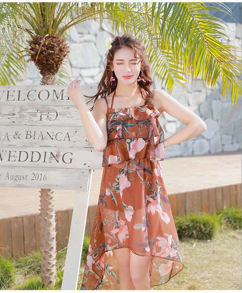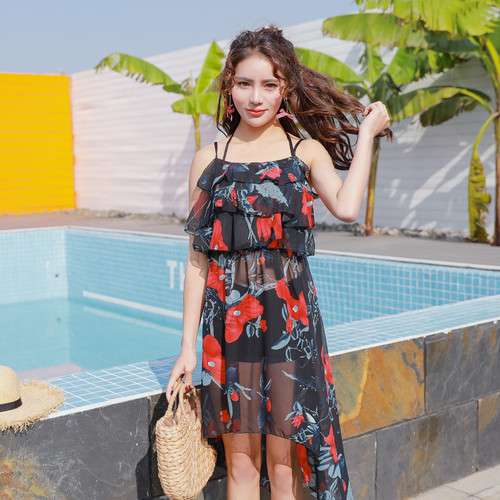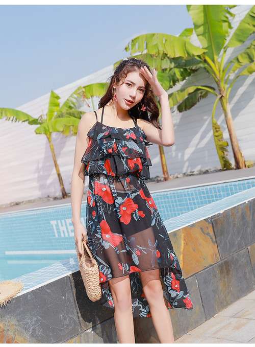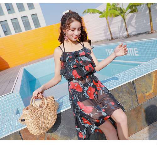 体型カバー 水着 ビキニ 3点セット 大きいサイズ レディース 2019年新作 ビーチウェア 40代 30代 フレア ワンピース フリル セットアップ 無地 花柄 リボン 透け感 シフォン シンプル 着やせ カバーアップ 韓国 ママ水着 オシャレ XL 海 プール ビーチ 海外リゾート
