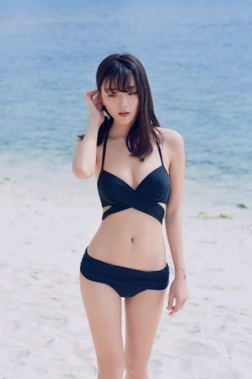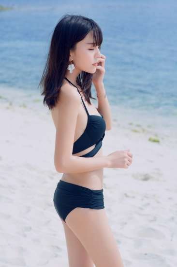 シンプルな無地デザインのビキニはシャーリングでフェティッシュに☆