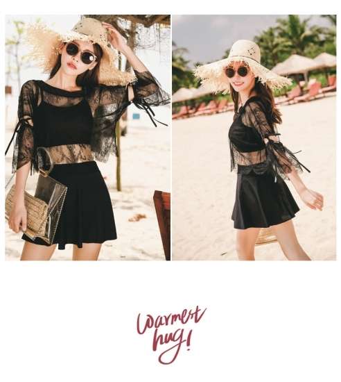体型カバー 水着 ビキニ タンキニ 4点セット 大きいサイズ レディース 2019年新作 ビーチウェア 40代 30代 20代 フレアスカート レース フリル セットアップ 無地 花柄 透け感 シンプル カバーアップ 小胸 着やせ 韓国 ママ水着 オシャレ XL 海 プール ビーチ リゾート