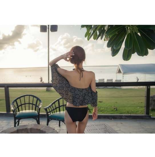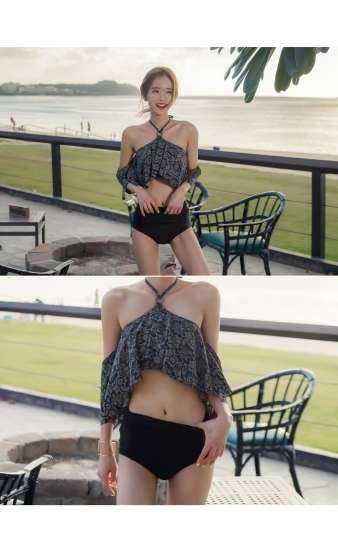 体型カバー 水着 ビキニ タンキニ 大きいサイズ レディース 2019年新作 ビーチウェア 40代 30代 フレア オフショルダー ホルターネック クロスホルター フリル セットアップ ダマスク柄 エレガント シンプル 小胸 カバーアップ 着やせ 韓国 ママ オシャレ XL 海 プール