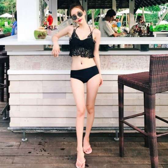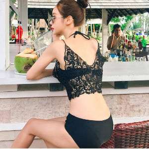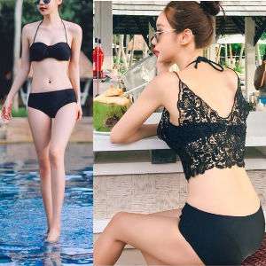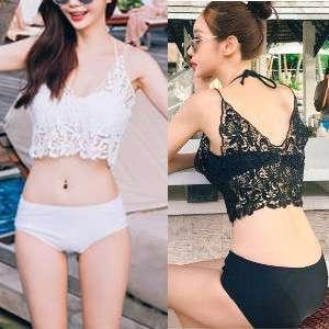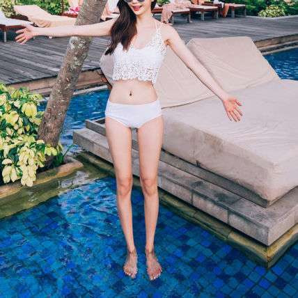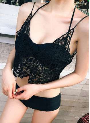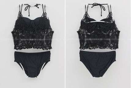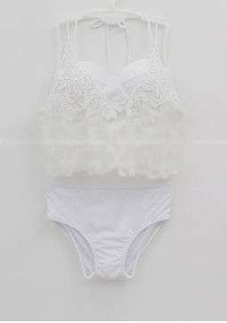 体型カバー 水着 ビキニ 3点セット ワンサイズ レディース 2019年新作 ビーチウェア 40代 30代 20代 バンドゥ ホルターネック フリル セットアップ レース 花柄 無地 透け感 シンプル 小胸 フレアトップ 韓国 ママ オシャレ 海 プール リゾート ビーチ ホワイト