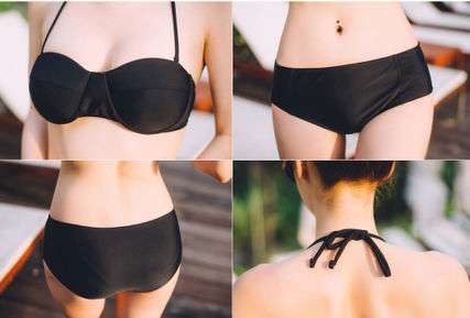 マットなワンカラーデザインのバンドゥビキニに加え、