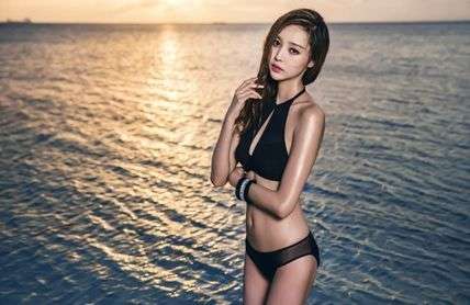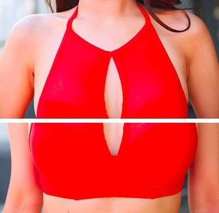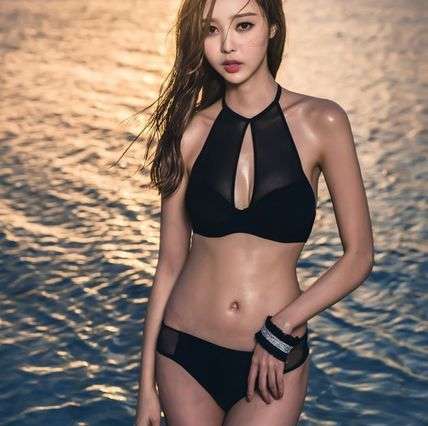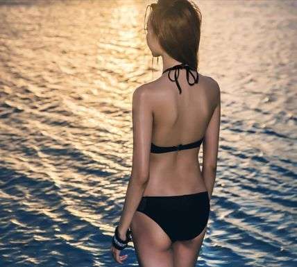 フロントカットデザインのホルターネックで色っぽさをグッとアピール。