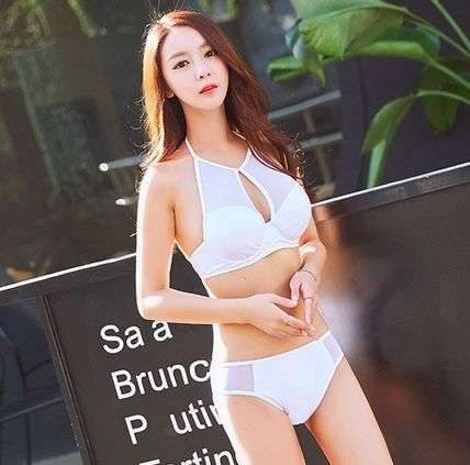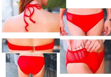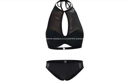 無地 シンプル ワンカラー シースルー エレガント フェティッシュ セクシー ホルターネック フロントカット ビキニセット セパレート