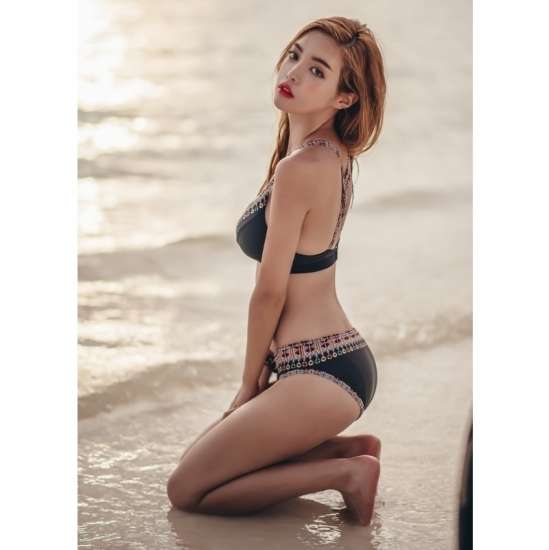 水着 ビキニ 大きいサイズ レディース 2019年新作 ビーチウェア 40代 30代 パッド付き バッククロス エスニック 無地 シンプル トレンド 着やせ 韓国 ママ オシャレ XL 海 プール サーフィン マリンスポーツ ブラック