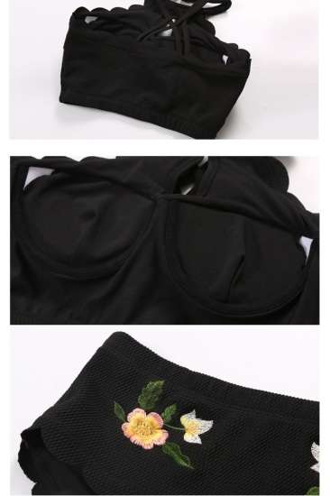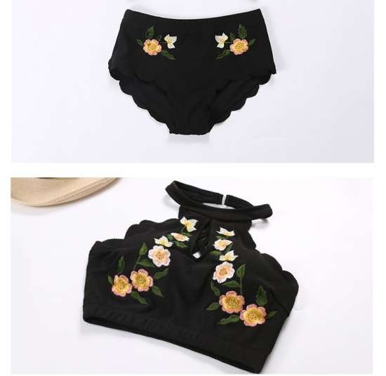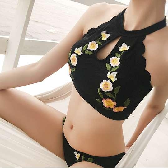 体型カバー 水着 ビキニタンキニ 大きいサイズ レディース 2019年新作 ビーチウェア 40代 30代 20代 刺繍 花柄 フリルカット バッククロス セットアップ 小胸 トレンド ローライズ スカラップ シンプル 着やせ 韓国 ママ水着 オシャレ かわいい XL 海 プール ビーチ