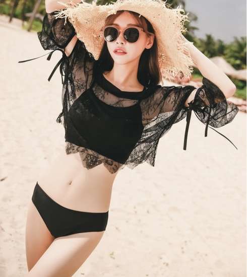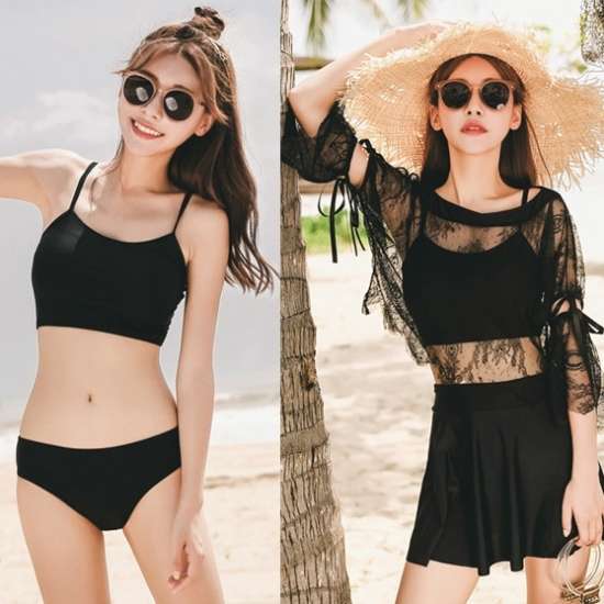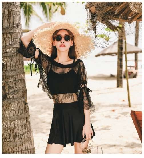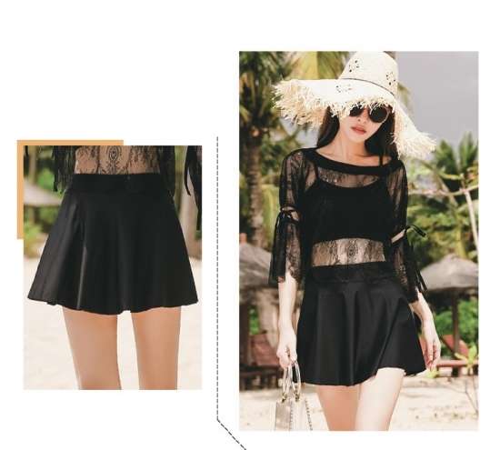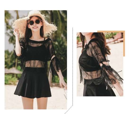 体型カバー 水着 ビキニ タンキニ 4点セット 大きいサイズ レディース 2019年新作 ビーチウェア 40代 30代 20代 レース フレアトップ スカート フリル セットアップ 花柄 無地 カップ付き 透け感 シンプル カバーアップ 着やせ 韓国 ママ オシャレ XL 海 プール ビーチ