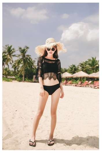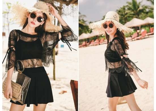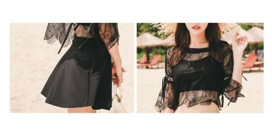 フレアミニスカートに加え、繊細なレース使いのカバートップ付きでワンセットですぐ海へ行けるマストバイアイテムです☆