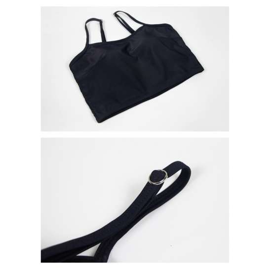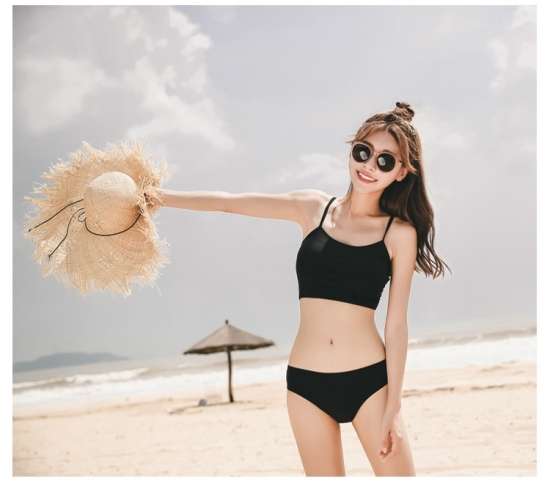 シンプルな無地デザインのビキニセットはバストラインを強調しすぎないフォルムに。