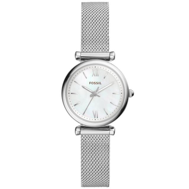 T字型のラグがほど良くフェミニンな印象を与えてくれるCarlie。メッシュブレスレットはサイズ調整が簡単で、しなやかで軽く、腕に寄り添ってくれる着け心地の良さが魅力です。【フォッシル FOSSIL】