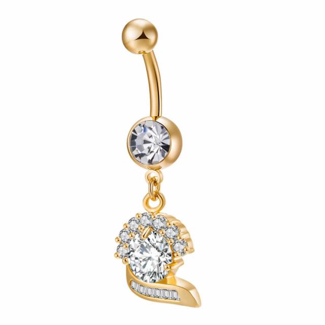 [14G おへそのピアス] クィーンジュエリー へそピアス 14ゲージ ボディピアス ボディーピアス ヘソピアス 臍ピアス メンズ レディース サージカルステンレス316L ラインストーン ジルコニア クリスタル ゴールド 金メッキ バナナバーベル パベ キラキラ 揺れる チャーム