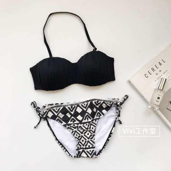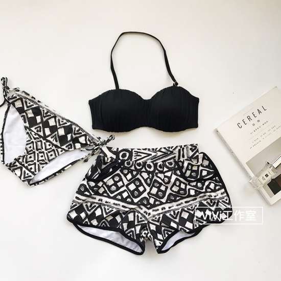 バンドゥホルターネックのトップスとショーツに加え、セパレートタイプのカバーアイテム2点を含めた4点セットです◎