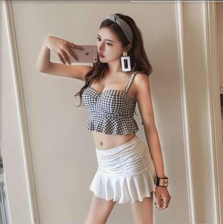 体型カバー 水着 ビキニ タンキニ ビスチェ 3点セット 大きいサイズ レディース 2019年新作 ビーチウェア 40代 30代 20代 フレアスカート フリル セットアップ ギンガムチェック トレンド 小胸 シンプル 着やせ 韓国 ママ オシャレ XL 海 プール マリンスポーツ