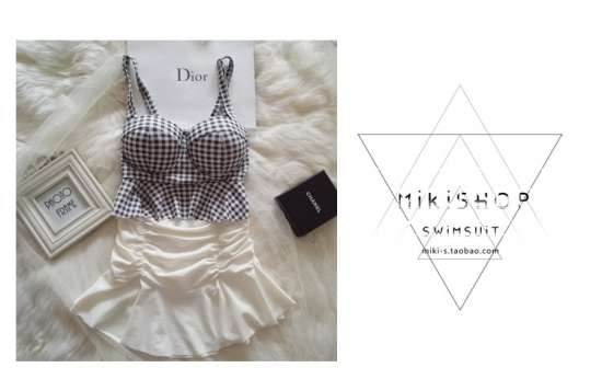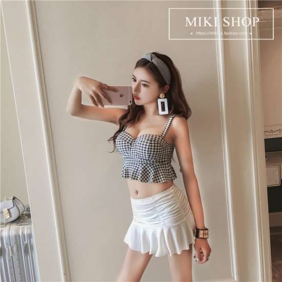 画像の色(ギンガムチェック のビキニとホワイトスカート)