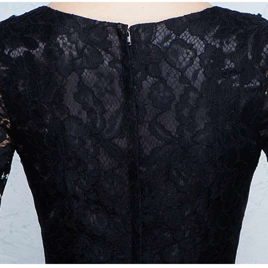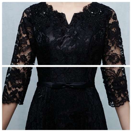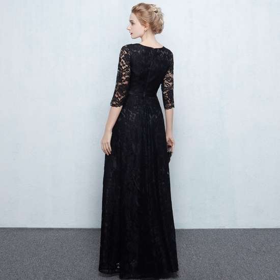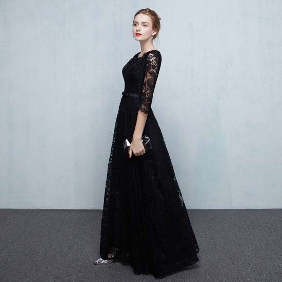 ロングドレス 袖あり 黒 演奏会 パーティードレス お呼ばれドレス イブニングドレス 二次会 お呼ばれ 同窓会 発表会 音楽会 食事会 ゲスト ブラック 大きいサイズ マキシ丈 5分袖 Aライン フレア レース 総レース シースルー 透け感 20代 30代 40代 50代 Vネック エレガント