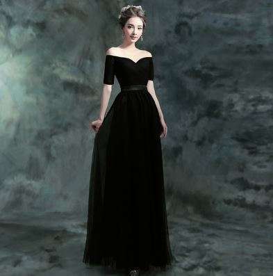 ロングドレス 黒 パーティードレス 春夏 結婚式 大きいサイズ 30代 ミモレ丈 半袖 袖あり 無地 Aライン フォーマル シンプル きれいめ