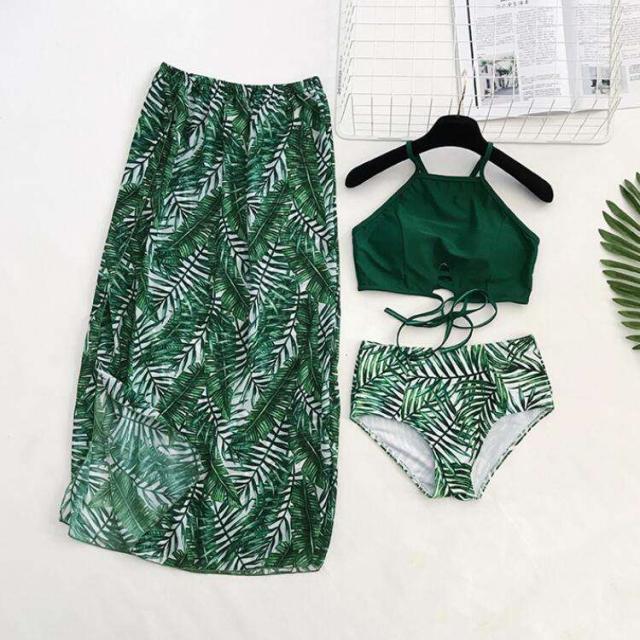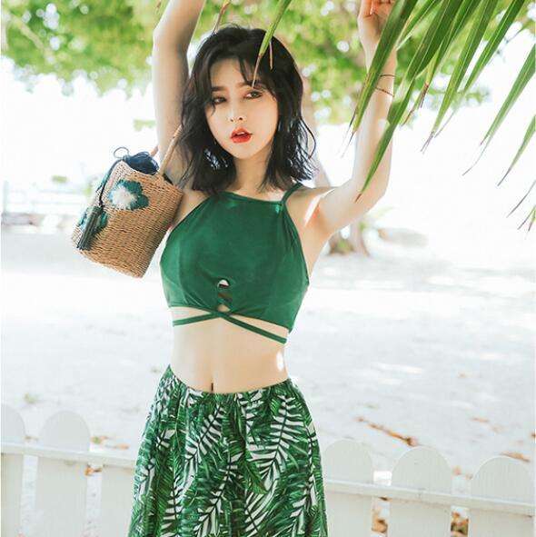2019新作水着 タンキニ 3点セット 水着 体型カバー パッド付き パレオ付き 大きいサイズ ビキニ レディース 40代 リボン セクシー ボタニカル ママ セパレート ミックススタイル ロングスカート付き トレンド カバーアップ 着痩せ オシャレ 可愛い 韓国 海 プール