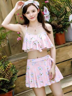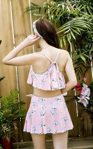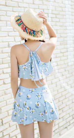 ビキニセット セパレート ツーピース 2点セット デイジー マーガレット 花柄 バストカバー フラワー フローラル フリル ウエストタイ