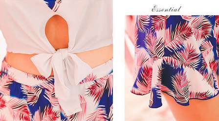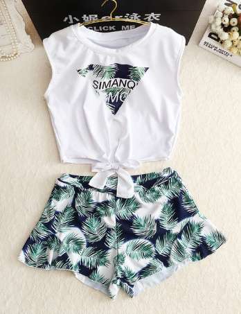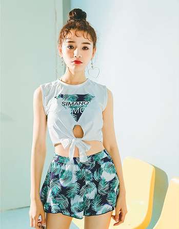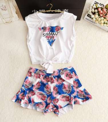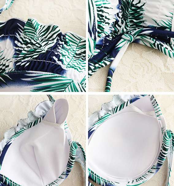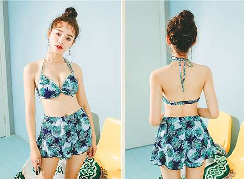 スカートスプリット水着 4点セット ボタニカル柄ビキニ ノースリーブトップ フリルパンツ ビキニ トレンド トロピカルカラー