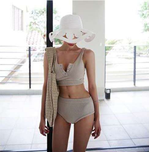 水着 体型カバー ビキニ レディース タンキニ 2019新作水着 40代 パッド付き セクシー 無地 ママ 着痩せ くびれ 可愛い オシャレ 人気 大流行 ニットビキニ フロントボタン ハイウエスト 海 プール クロシェ ニット素材 シンプル インスタ トレンド 流行 韓国