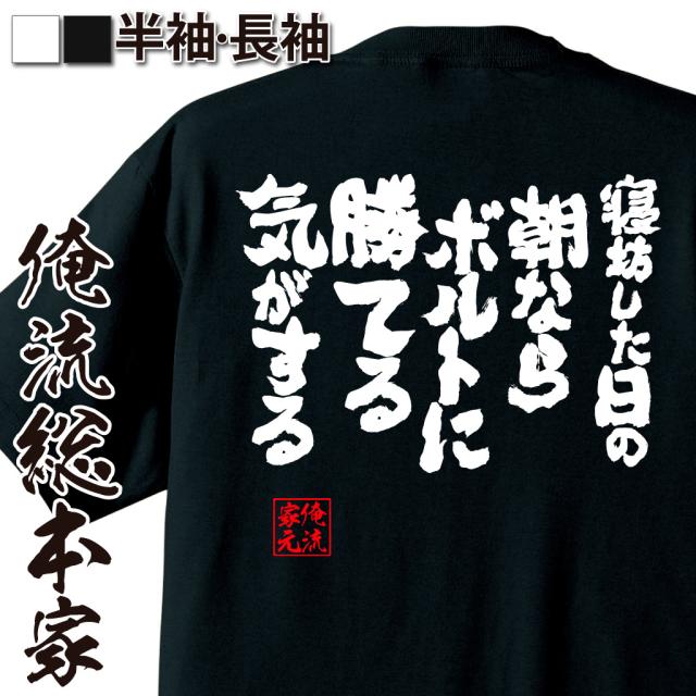 俺流 魂心Tシャツ【寝坊した日の朝ならボルトに勝てる気がする】 漢字 メッセージtシャツ| プレゼント ジョーク グッズ 文字tシャツ 外国人 お土産 おもしろ ふざけtシャツ 二次会 景品 面白 おもしろ雑貨 オリジナルtシャツ