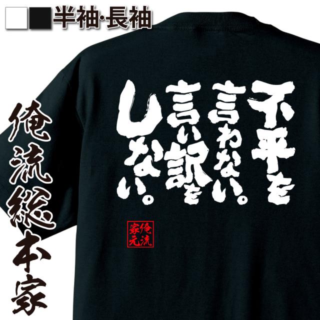 俺流 魂心Tシャツ【不平を言わない。言い訳をしない。】名言 漢字 文字 メッセージtシャツ |文字tシャツ 面白いtシャツ 面白 大きいサイズ 文字入り プレゼント 外国人 お土産 メンズ 白 黒 面白 ジョーク グッズ バックプリント