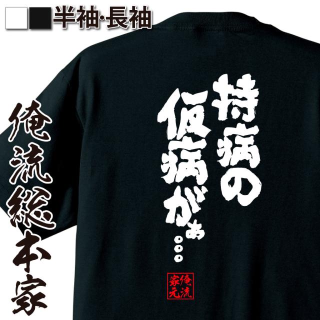 俺流 魂心Tシャツ【持病の仮病がぁ。。。】 漢字 文字 メッセージtシャツ| プレゼント 外国人 お土産 ジョーク グッズ 文字tシャツ おもしろ ふざけtシャツ 二次会 景品 長袖 Tシャツ 面白 おもしろ雑貨 オリジナルtシャツ