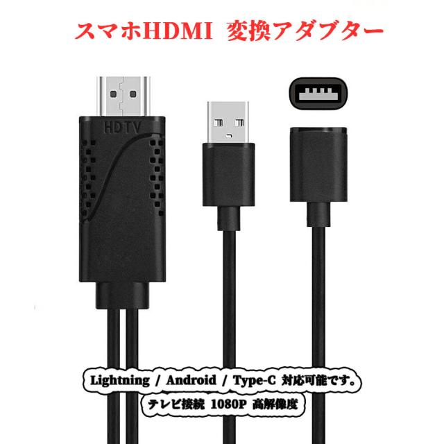 iPhone to HDMI 変換アダブター Lightning to HDMI 変換ケーブル テレビ接続 1080P 高解像度