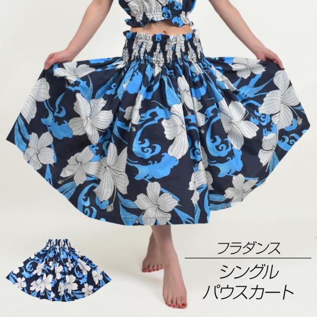 フラダンス衣装 ダンス衣装 パウスカート シングル ブルー 青 ネイビー 紺 ウエストゴム 5本 レディース かわいい JA44145[新品]