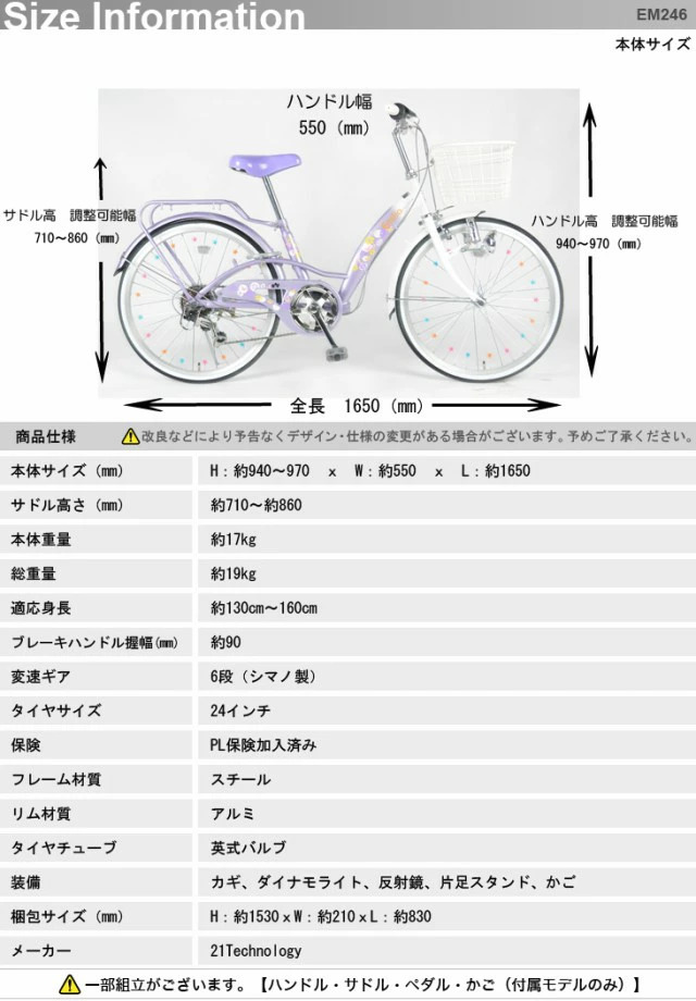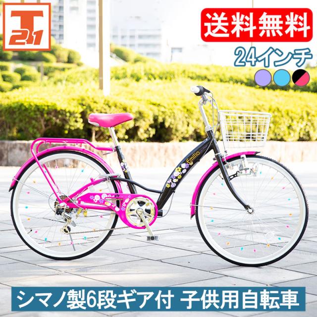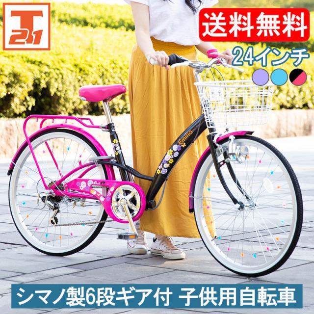 【メーカー直売】子ども用自転車 24インチ シマノ6段ギア付 女の子 プレゼント キッズバイク 95%完成車 子ども 乗り物 自転車 送料無料 EM246 21Technology