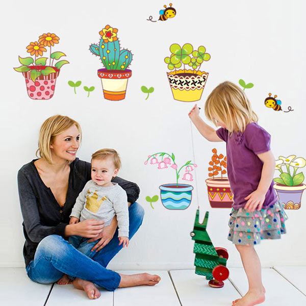 ●カラフルなフラワー・ポットがモチーフのとってもかわいいなウォールステッカーです♪お部屋を明るく元気に彩ります!!子供部屋にもぴったりのデザインです♪