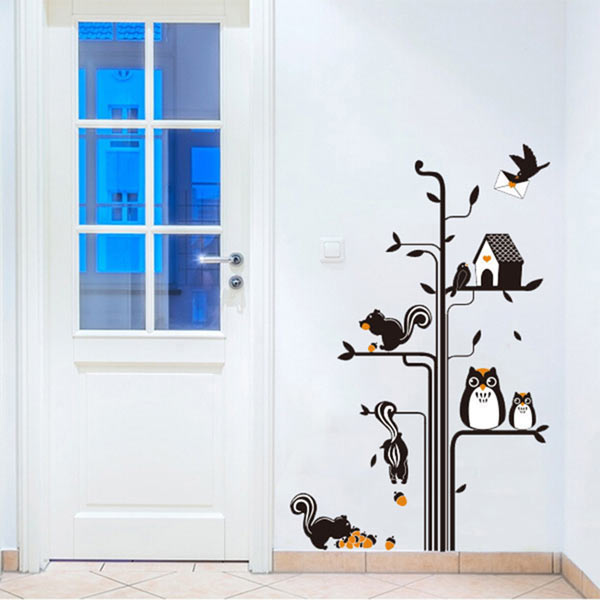 ●リスと小鳥とフクロウがモチーフの、シックでオシャレなウォールステッカーです♪子供部屋にもぴったりのデザインです♪