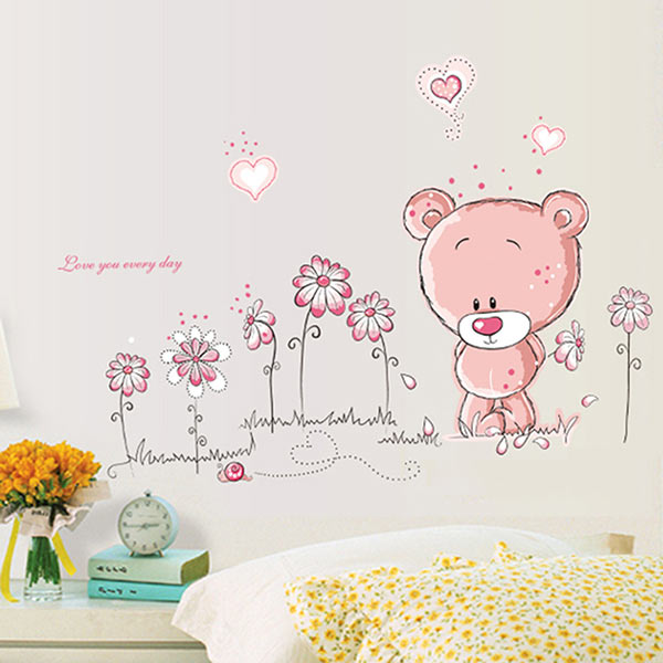 貼ってはがせる簡単ウォールステッカー フラワー・ベアー